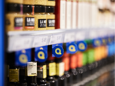 - Les logos de provenance directement apposés sur l’étiquette de prix;