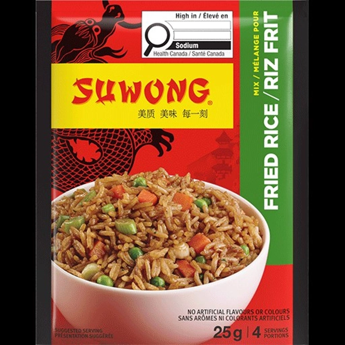 Mélange d'ingrédients secs au goût de soya et salé pour préparer du riz frit.