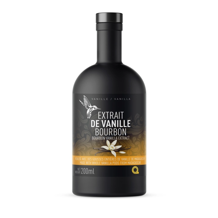 Extrait de vanille Bourbon réalisé au Québec avec des gousses de vanille de Madagascar provenant exclusivement d'un producteur de la région de Vohémar. Terroir très identitaire, parfum puissant, empyr...