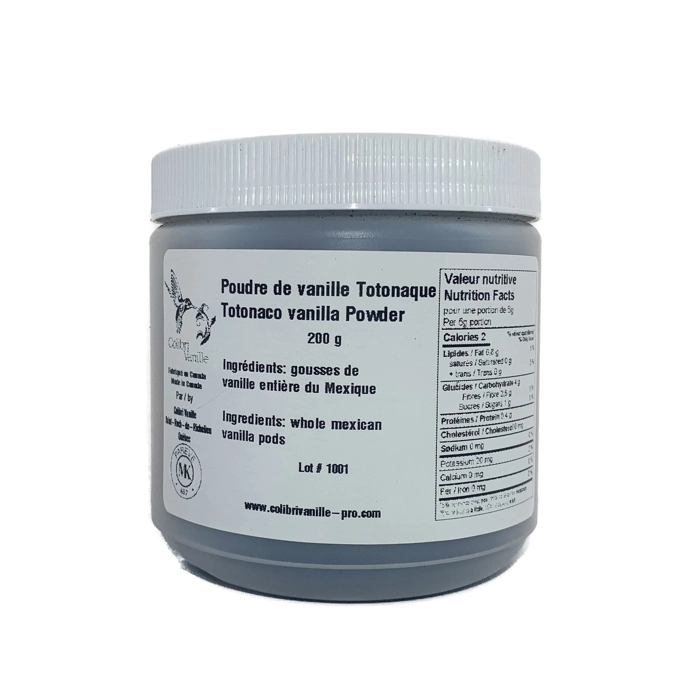 La poudre de vanille est réalisée avec des gousses de vanille entières, de la meilleure qualité, et réduite en poudre fine ici au Québec afin de vous assurer de la plus grande pureté du produit. La po...