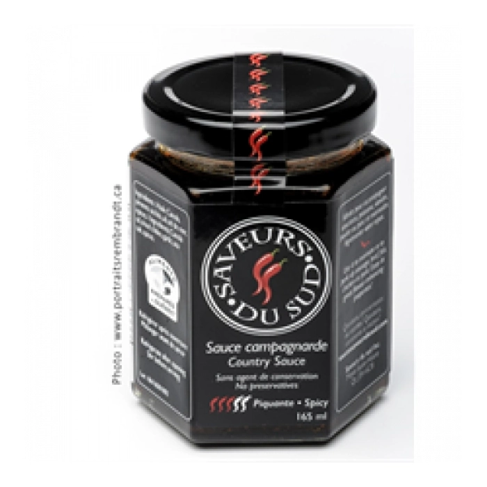 La Sauce Campagnarde Sauce à base de 5 piments différents, d’un goût sophistiqué, elle est douce mais libère beaucoup de saveurs. Son goût est inimitable. Elle peut accompagner saucisses, viande, pois...