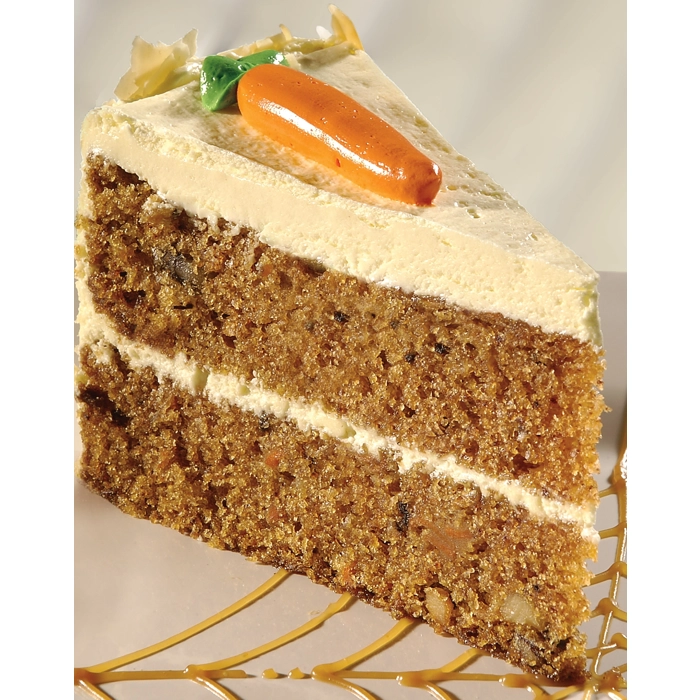 Pâte aux carottes et aux noix, garnie de crème fondante au fromage à la crème.