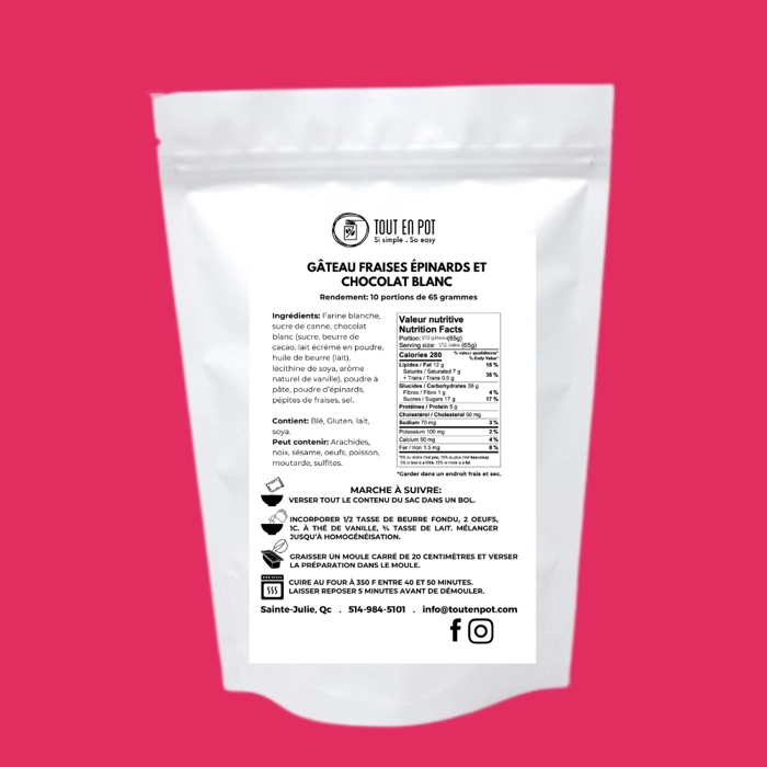 Dessert prêt à cuisiner fait d'ingrédients déshydratés. Le client ajoute les ingrédients liquides au mélange d'ingrédients secs et le cuit selon les instructions inscrites sur l'étiquette du produit.