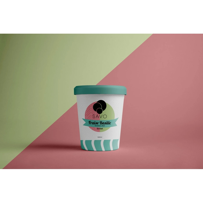 Sorbet à la fraise avec des pouces fraîches de basilic