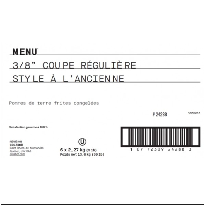 Menu 3/8” STRAIGHT old Fashioned French Fries