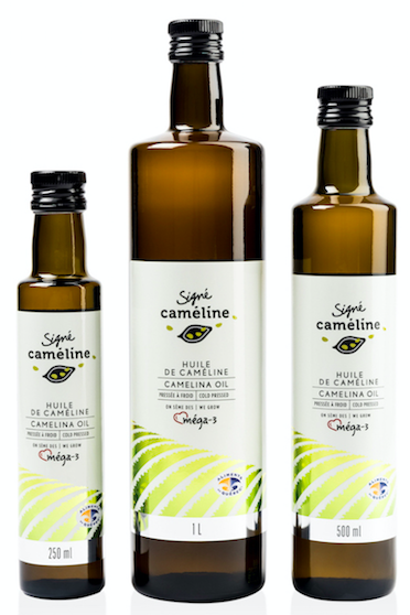 Signé Caméline camelina oil stands out for its unique flavor, with notes of hazelnut, sesame, and herbaceous aromas that shine just as much in cold dishes as in cooking. In addition to being a product of Québec, this oil is remarkable for its naturally high omega-3 content (up to 35%, which is significant compared to canola oil at 10% and olive oil at only 1%).