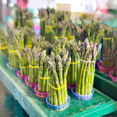 In spring, when the snow finally melts and the earth comes back to life, a few heroes from our fields peek through to announce the return of the good weather. Among them: fiddleheads, rhubarb… and of course, asparagus! This true primavera vegetable is one of the very first to appear at our markets, officially kicking off a bountiful season for our local growers.