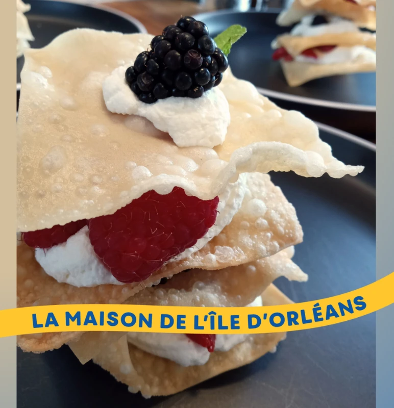 A refreshing and daring experience awaits with this frozen parfait. Combining honey and wildflower absinthe from Hydromel Charlevoix with Québec apple compote, it is elevated by Mystique sparkling cider ice cream from Cidrerie du Minot. An almond mousse crowns the dessert, creating an unexpected and delicate harmony of flavors.