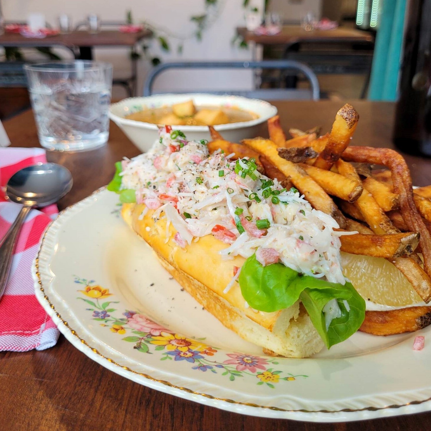 With snow crab season in full swing, and seated in the modest 20-seat dining room, I enjoyed a snow crab roll served with its bisque, accompanied by phenomenal homemade fries (of course!) made from a very particular Russet potato.