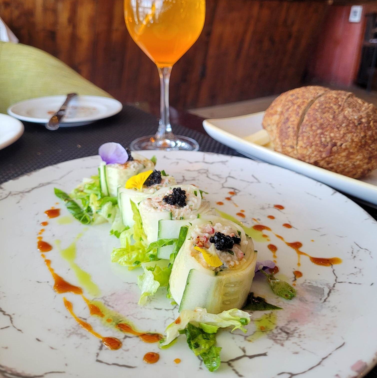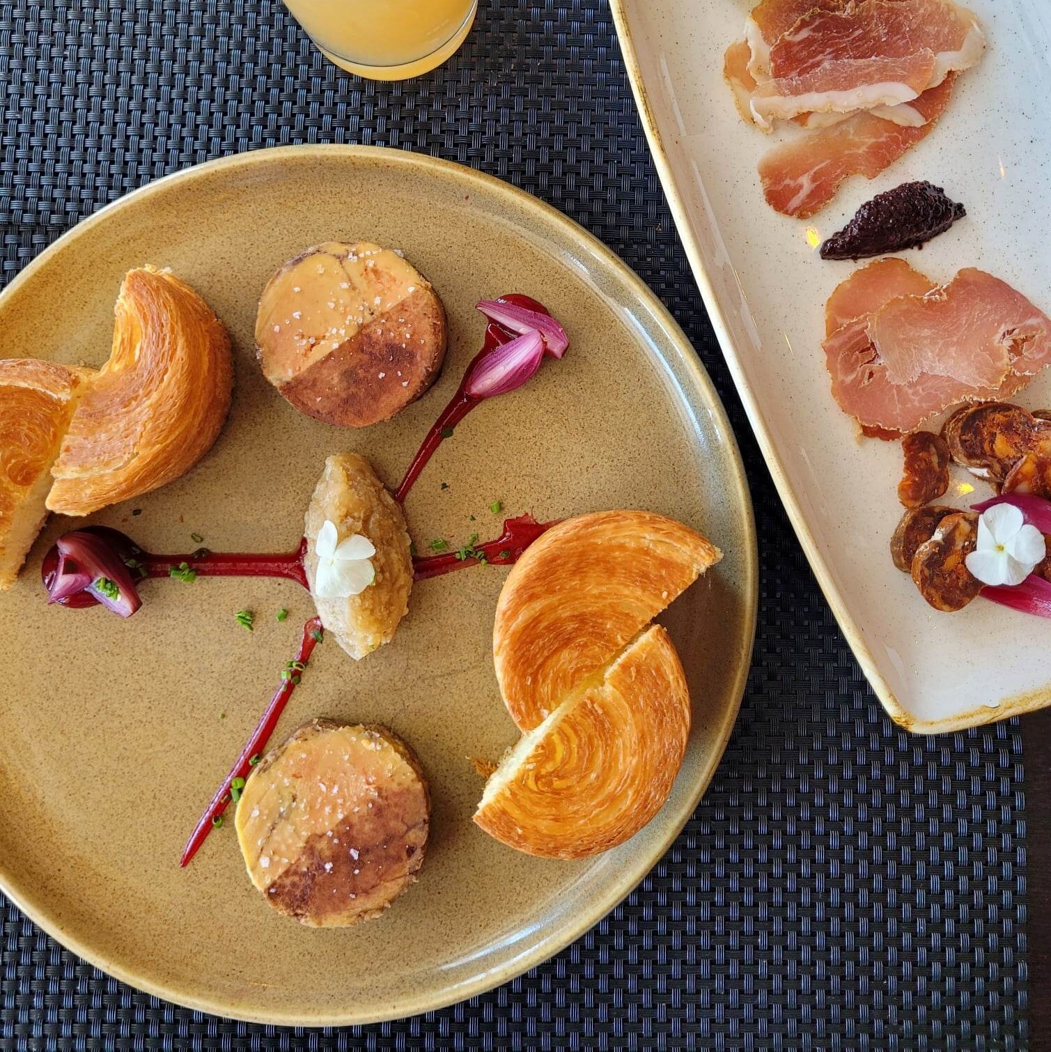 During my visit, snow crab, the signature foie gras, and house-made charcuterie were in the spotlight. After 11 months of waiting for the first sign of spring for any cook (Quebec snow crab!), chef Alexandre Vachon truly elevated it—served already shelled, wrapped in thin crunchy cucumber ribbons, and topped with caviar, green oil, and birch syrup. Spectacular! The foie gras was equally memorable, combining rich duck flavors with the acidity of cherry confit and buttery laminated brioche.
