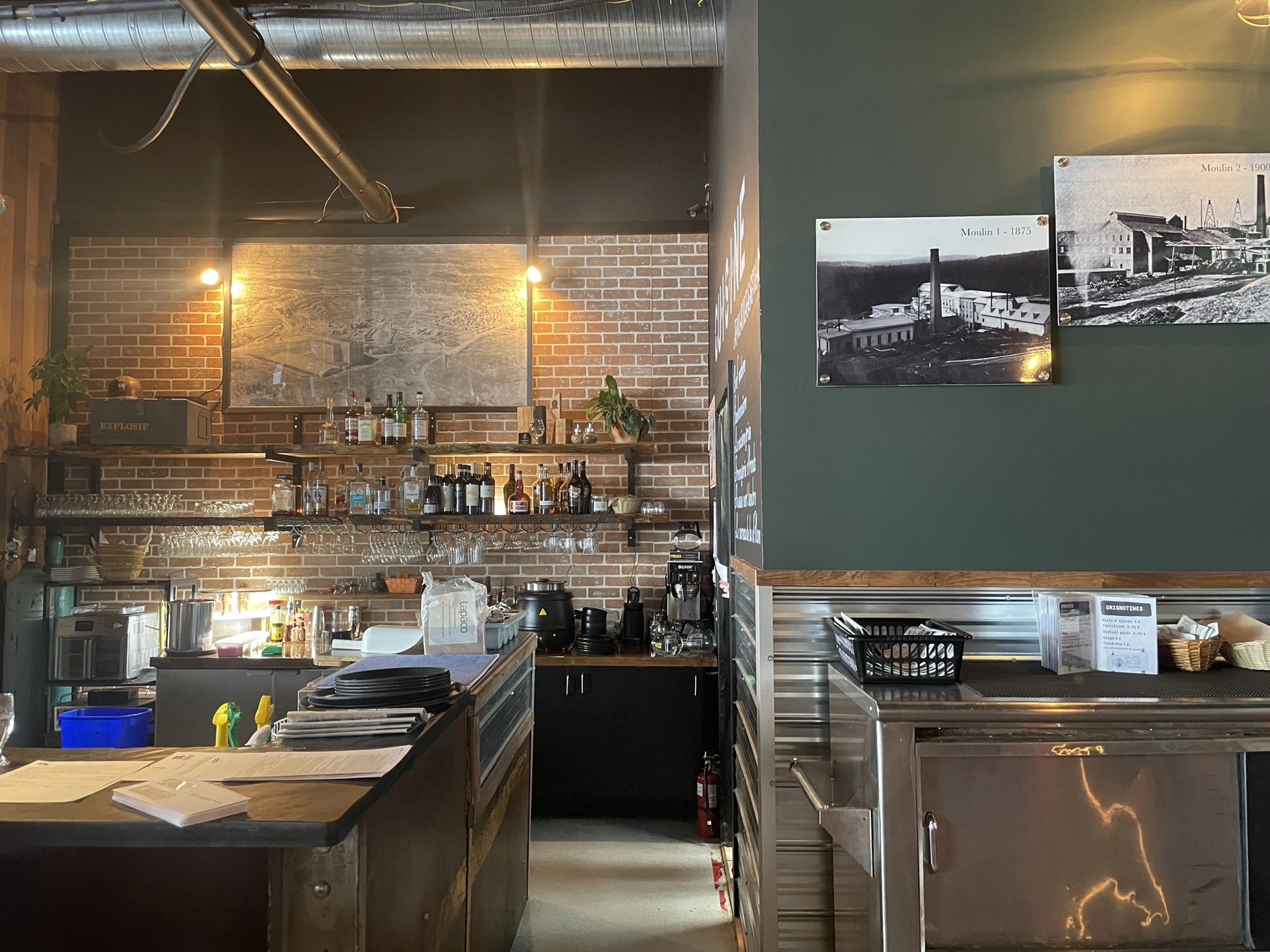 Moulin 7 – Pub et Microbrasserie, in Val-des-Sources, draws inspiration from the town's mining heritage. The establishment brews craft beers and serves cuisine in a setting reflecting the region's industrial past.