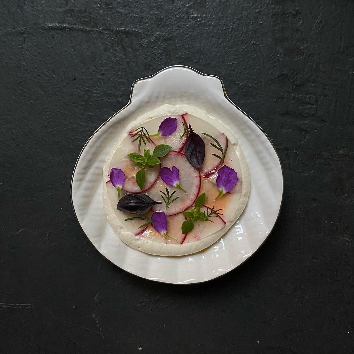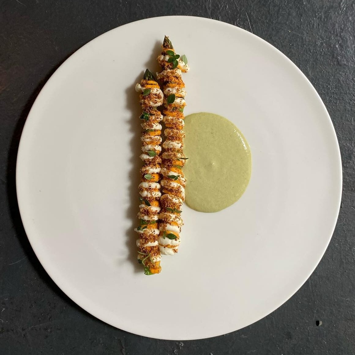 La générosité et la gourmandise assumée qui se traduisent dans les assiettes m’ont grandement comblé. L’entrée mettant en valeur la tête de violon, légume primeur du printemps, ne consistait pas qu’à 5 têtes de violon serrées dans un coin de l’assiette et condimentées de manière à occuper le vide.