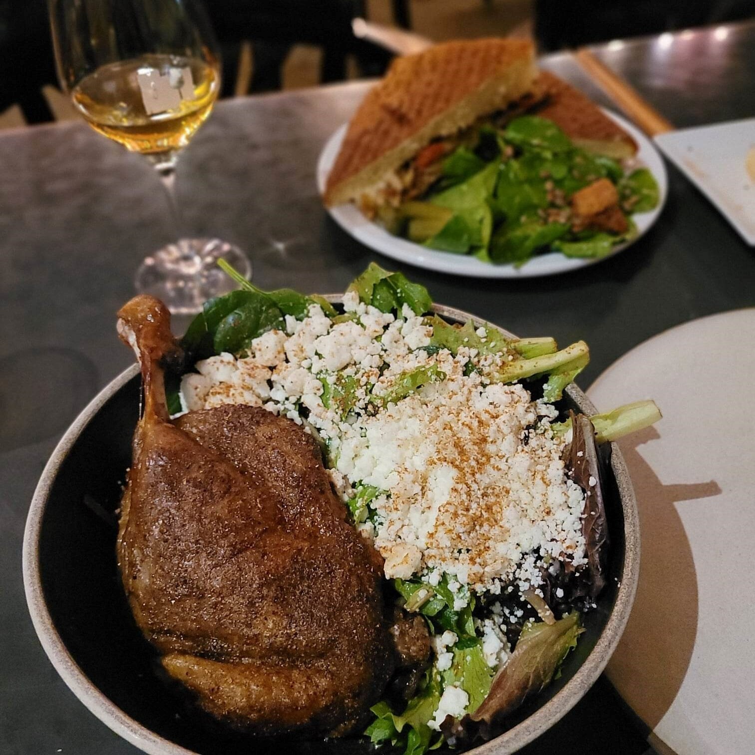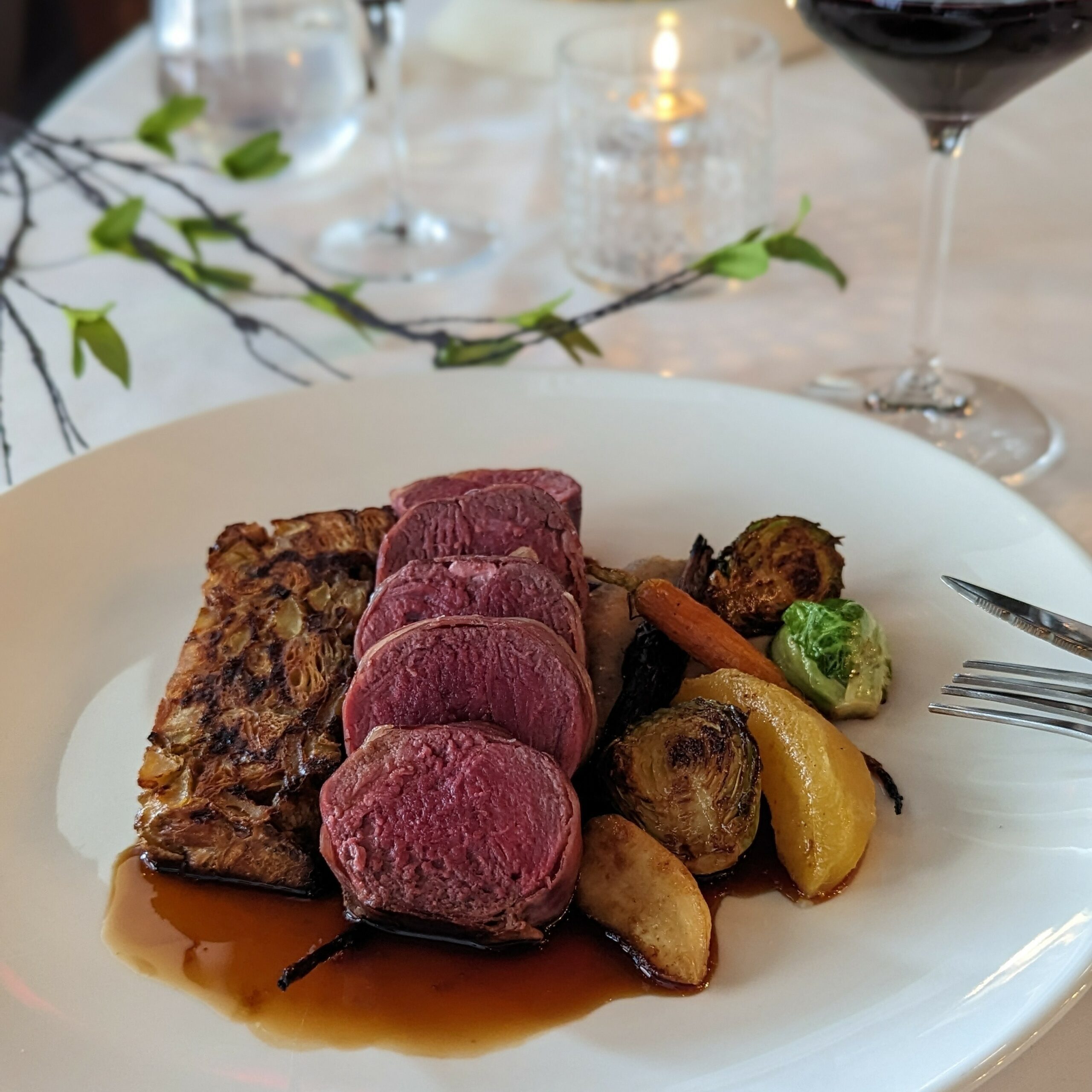 Je vous emmène dans le vieux Saint-Eustache, dans la demeure Plessis-Bélair construit en 1880, où le chef Olivier et sa femme, responsable de la salle, la refont vivre à leur façon… Et de manière délicieuse. Décor chaleureux, chaises confortables, nappes repassées, service professionnel… Clairement, nous sommes chez des hôtes qui savent recevoir. Cette envie de nous faire passer un bon moment se traduit savoureusement dans les plats qui brisent la tendance des petits plats de partage. On est plutôt dans la générosité, d’assiettes complètes chargées de produits du Québec.